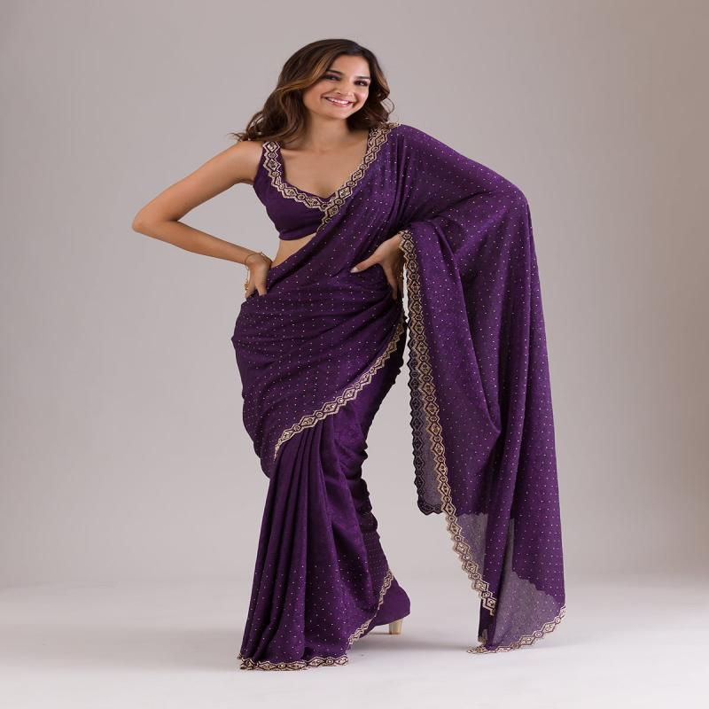 Purple Stonework Semi Crepe Saree