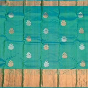 Rama Green Saree in Pure Silk fabric. The Saree is elevated with Gold Zariwork embroidery. It comes with an Unstitched blouse. Comes with the Indian Silk Mark certification.