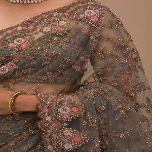 Pista Green Stonework Shimmer Georgette Saree