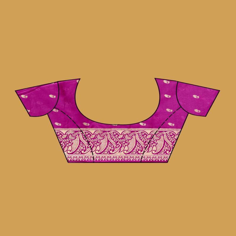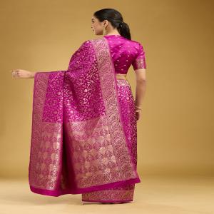 Violet Silk_Saree in Art Silk fabric. The Silk_Saree is elevated with Zariwork (Gold) embroidery. It comes with an Unstitched blouse. Comes with the Koskii promise of premium quality.